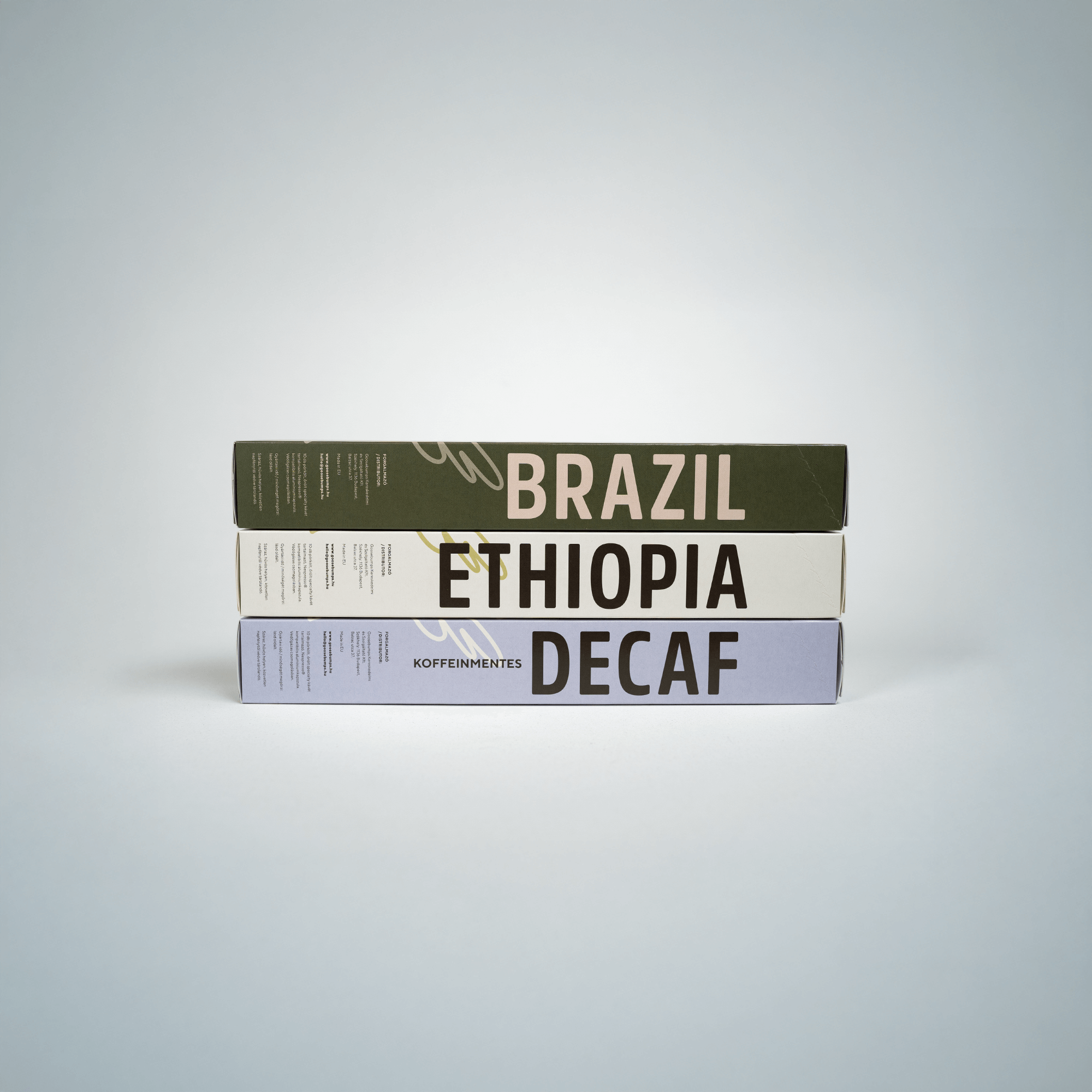 Belföldi rendeléseidet házhozszállítással (futárszolgálattal) vagy csomagautomatába, csomagpontra juttatjuk el, de választhatod a személyes átvételt is a Fekete Sas utcai kávézónkba (Goosebumps Specialty Kávézó – 1027 Budapest, Fekete Sas utca 3/b.)